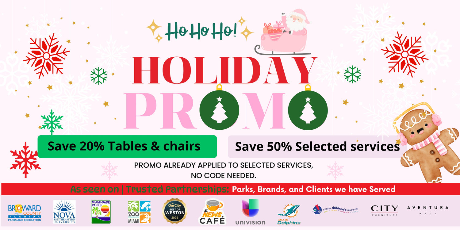 30 Guest - Party Rental Package Resin Foldable chairs & tables