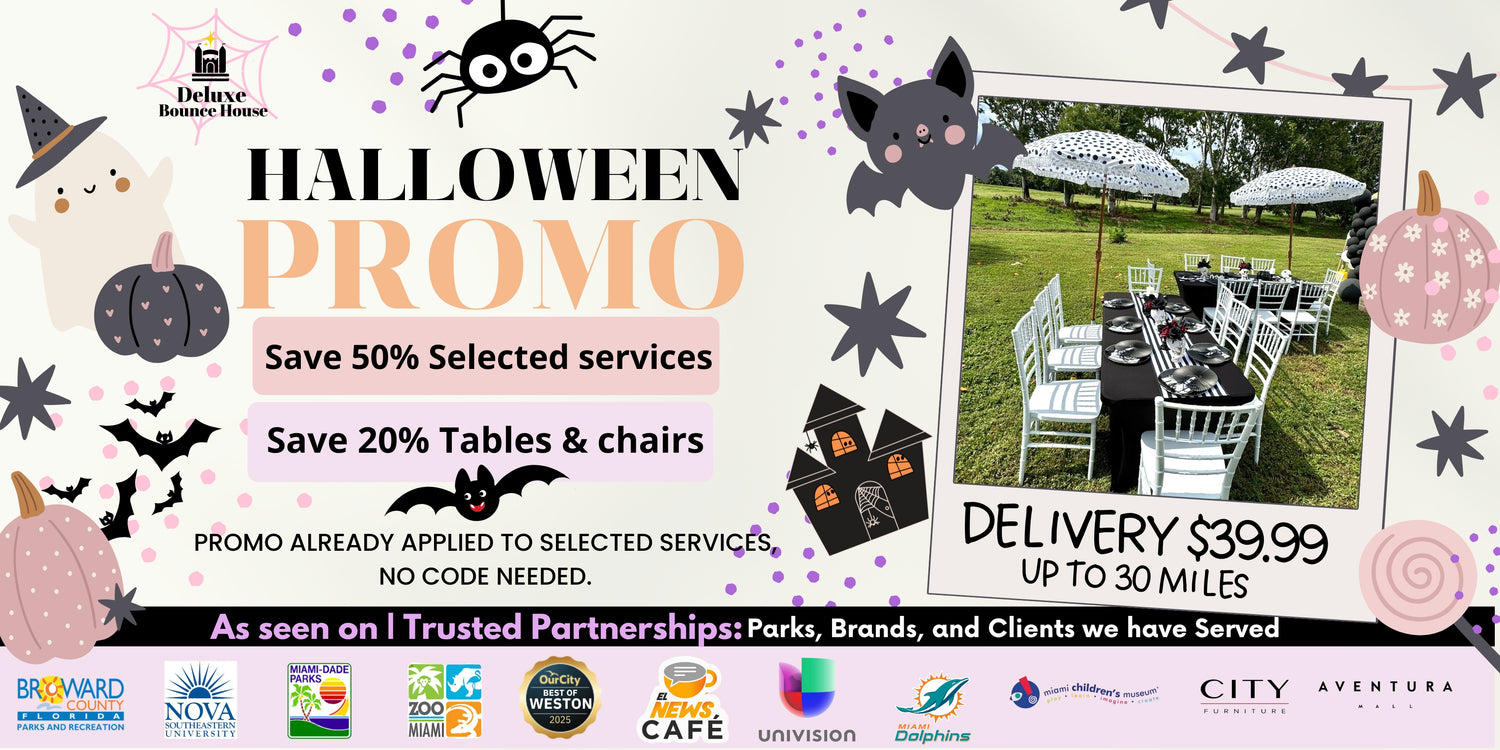 30 Guest - Party Rental Package Resin Foldable chairs & tables