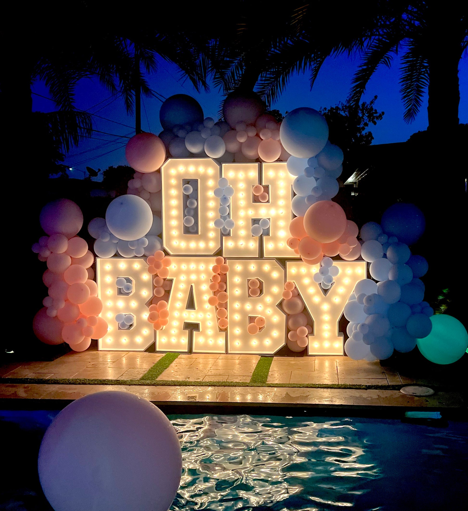 If you are looking for a Marquee letters for a Baby Shower or Gender Reveal this option is great for you! Rent our OH BABY marquee letters and make you event unforgettable, make your event memorable with our light up marquee letters.