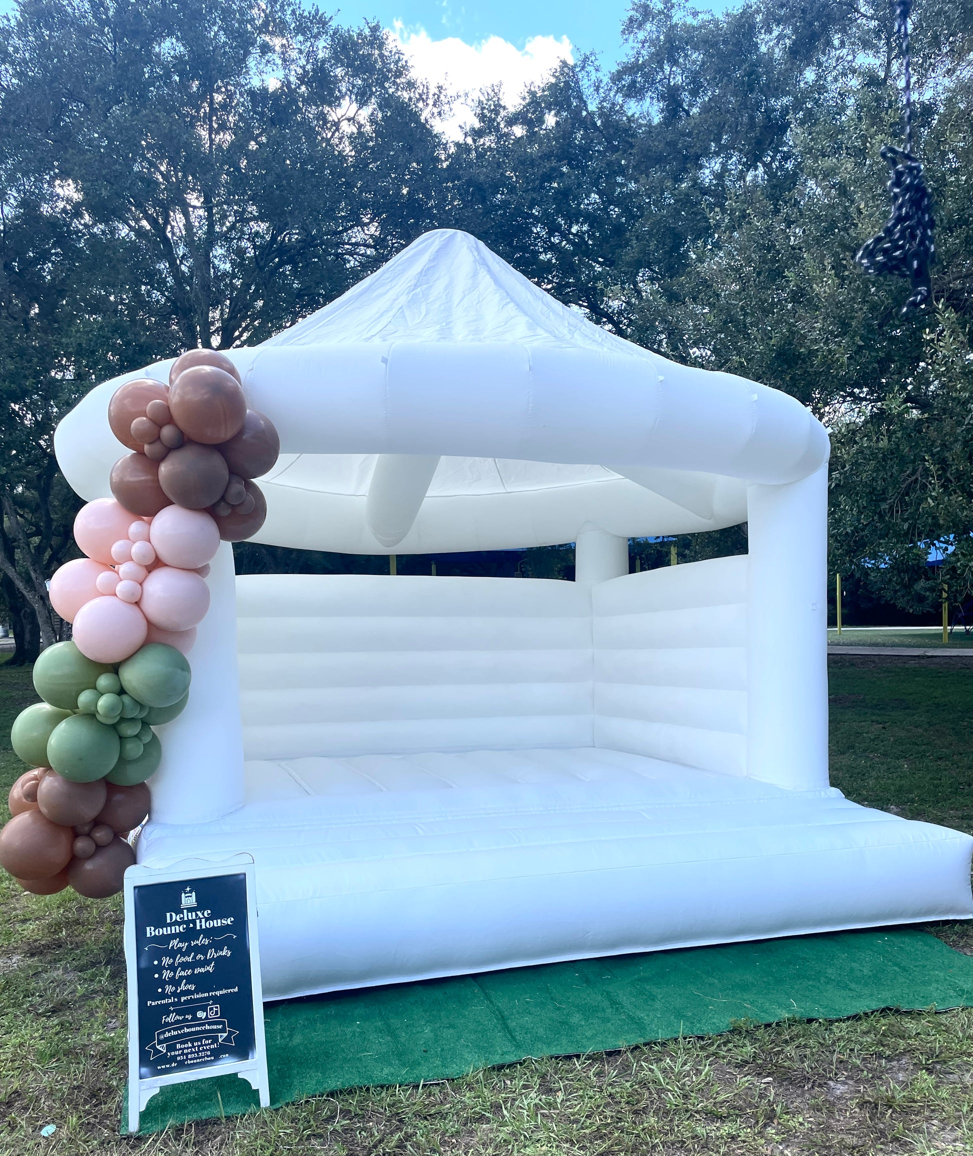 Just imagine your next event pictures with a White Bounce House with Roof decorated with Balloons of your decorations colors! That will be amazing right!